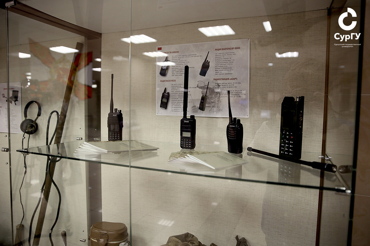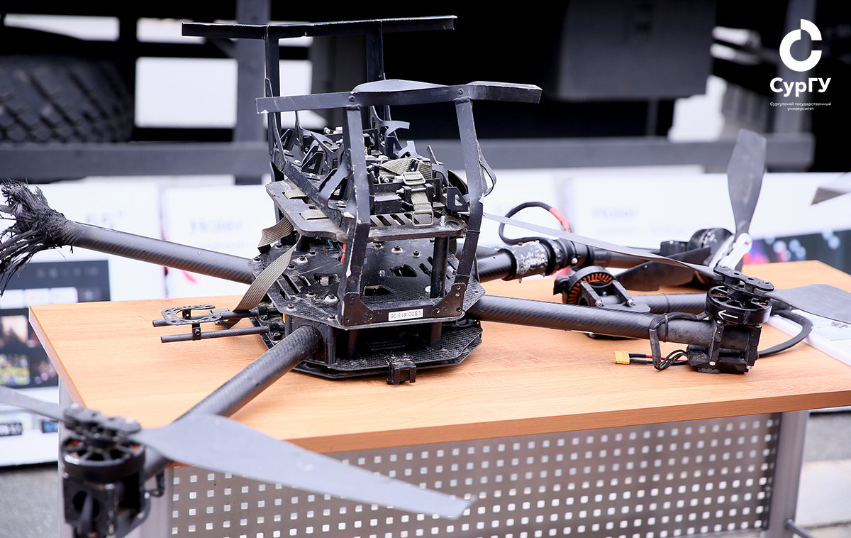 «Сегодня в экспозицию «Вызов времени» поступили три беспилотных летательных аппарата как украинского, так и российского производства, и другие боевые припасы. На данный момент в наличии музея большое количество экспонатов, более ста, это все предметы, прибывшие из зоны СВО и отражающие деятельность студентов и сотрудников Сургутского государственного университета по поддержке бойцов СВО. Также представлены: миноискатель; беспилотники; предметы, описывающие быт бойцов; личные вещи солдат, а также библиотечная и методическая литература, выпускаемая Министерством обороны РФ, и многое другое. Это комбинированная выставка и библиотеки, и музея СурГУ».