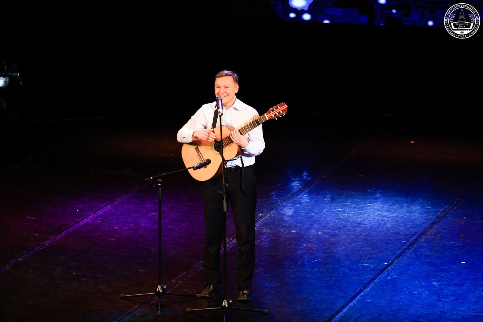 Студентка 3-го курса направления «экономика» Юлия Мыльникова прочла стихотворение Эдуарда Асадова «Возвращенное время», а выпускник специальности «бухгалтерский учет, анализ и аудит» 2001 года Сергей Кротов исполнил под гитару песни: «Он был старше ее», «Однажды мир прогнется под нас».
