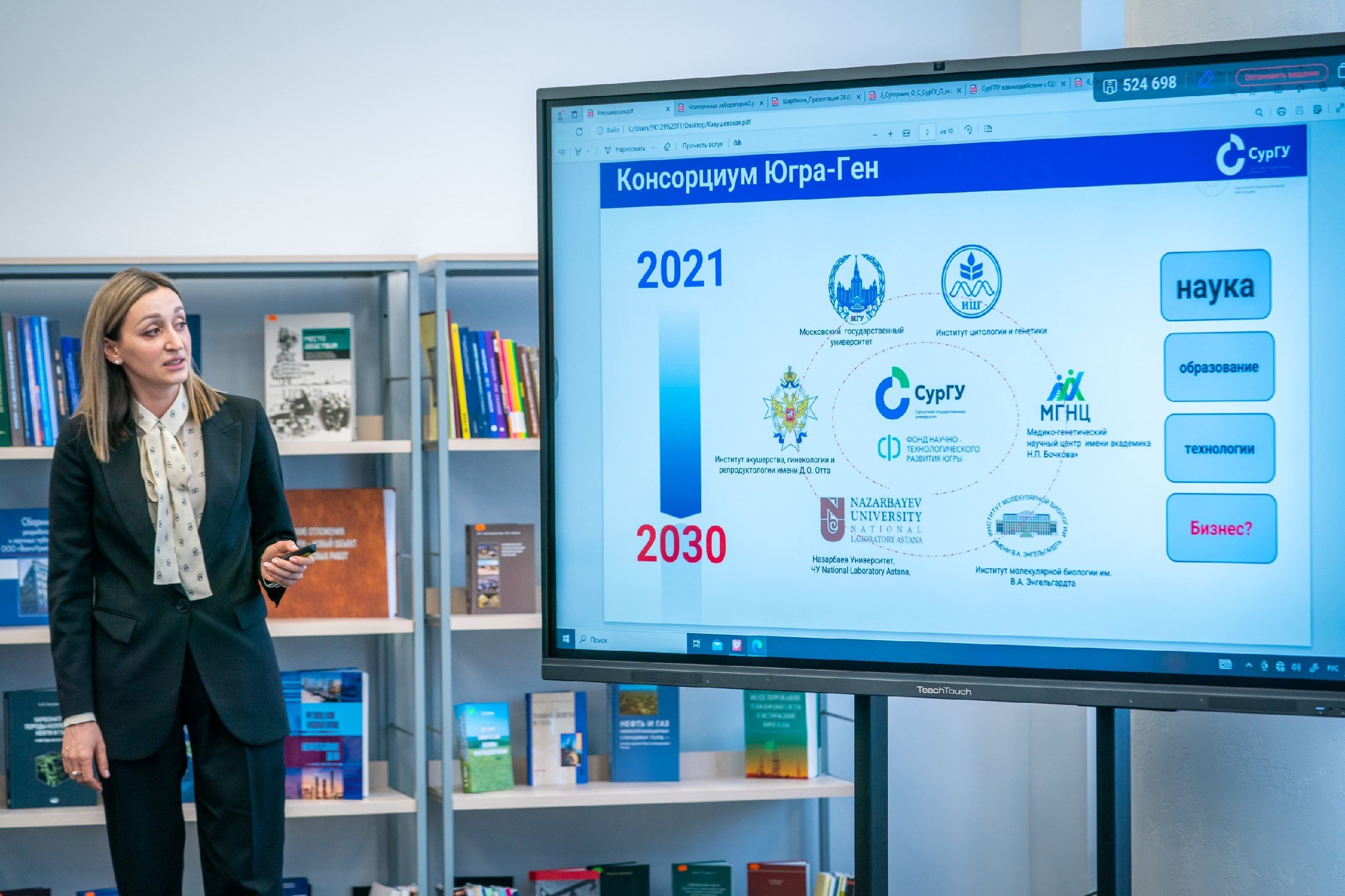 Наталья Кавушевская в своем докладе отразила направления стратегического проекта «Югра-ген» программы «Приоритет-2030, которые реализуются под руководством ведущих ученых страны: