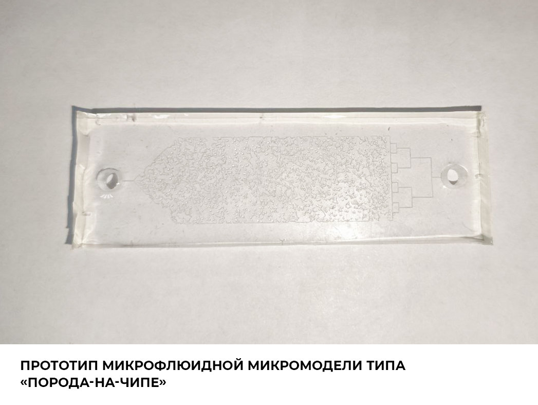 Речь идет о микрофлюидной микромодели типа «порода-на-чипе» – компактной системе, которая имитирует структуру нефтяного пласта на микроуровне. Проект реализуется при поддержке Российского научного фонда и сейчас находится на ключевом этапе – создании физического прототипа модели.
