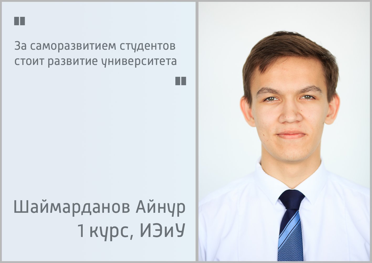 Студенческий совет университета возглавил студент 1-го курса Института экономики и управления Айнур Шаймарданов.