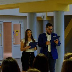 Ведущие праздника Максим Курц и Кристина Воротеляк, а также их помощники студенты-лингвисты из групп 208-61 и 208-62 сделали это мероприятие особенно теплым и незабываемым.