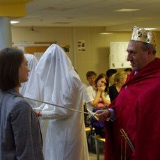 Церемония торжественного посвящения в лингвисты началась с торжественной клятвы лингвистов, которую зачитала для первокурсников кандидат филологических наук, доцент Елена Король, стоявшая у истоков лингвистического образования в СурГУ. После торжественной клятвы новоиспеченные лингвисты принесли символическую клятву на основных учебниках лингвистов под редакцией В.Д. Аракина, которые принесли в зал студенты в костюмах друидов. Ибрагим Курбанов, выступивший в роли английского короля, посвятил первокурсников в лингвисты мечом и заклинанием.