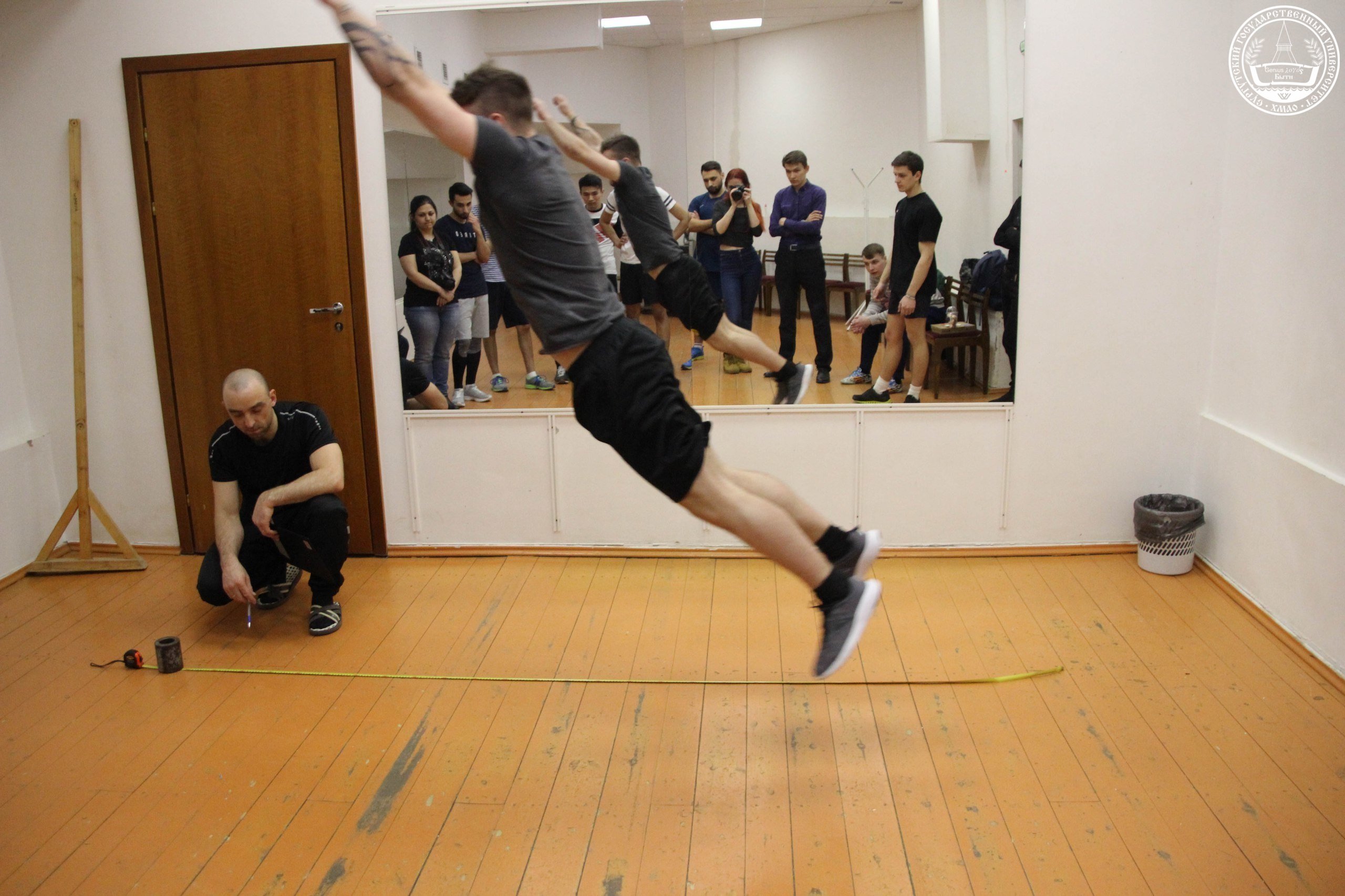 Третьим нормативом оказались прыжки в длину, где всех с большим отрывом перепрыгнул Игорь Яицкий, с расстоянием 2 метра и 75 сантиметров, за ним следует Артем Усатый — 2 метра и 52 сантиметра, Андрей Кучеров — 2 метра и 51 сантиметр. Также на этом этапе не обошлось без проявления благородства к сопернику: довольно долго Асиф Мамедов не мог сдать норматив из-за скользких кроссовок, он то падал на точке приземления, то делал заступ перед прыжком. Арафат Шайхвалиев любезно предложил ему воспользоваться его кроссовками. Это лишний раз подчеркивает то, что между ребятами, несмотря на конкурентный дух, поддерживается атмосфера дружбы и взаимовыручки.