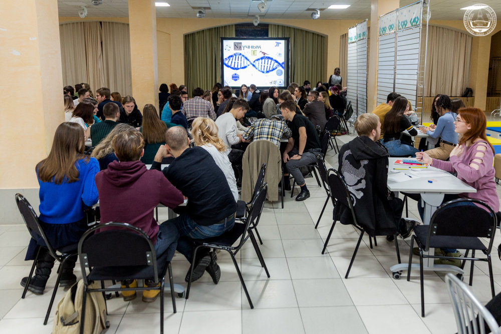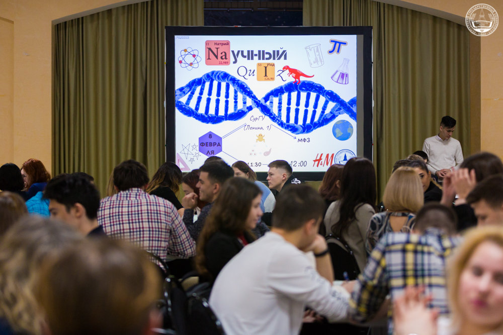 Студенты, аспиранты и преподаватели университета приняли участие в научно-популярном квизе. В интеллектуальном поединке сошлись 17 команд, а это более сотни участников, которым предстояло разгадать две «Мультиигры», посвященных кино и таблице Менделеева, а также ответить на 24 каверзных вопроса.