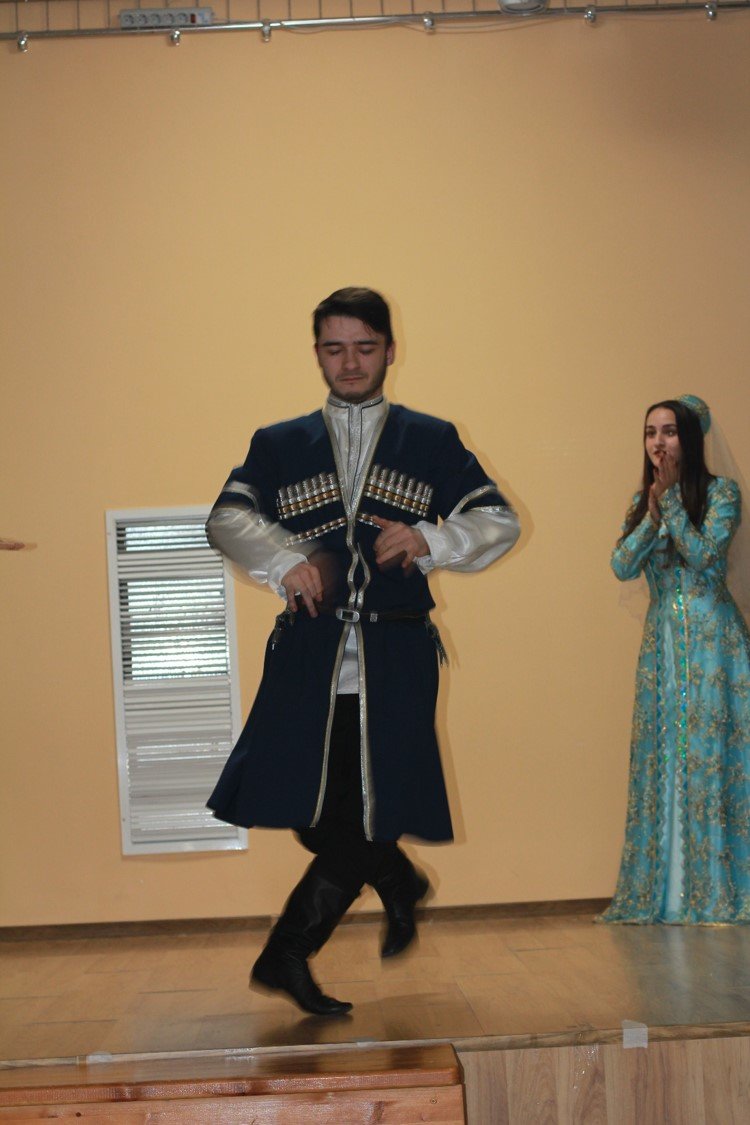 Зажигательный кавказский танец студентов Далгата Муталимова, Шамиля Курбанова, Фарангиз Каршибаевой Лейлы Ахтямовой, Кюльзар Маммедовой, Мехрангез Дултаевой сорвал шквал аплодисментов, зрители долго не хотели отпускать танцоров.