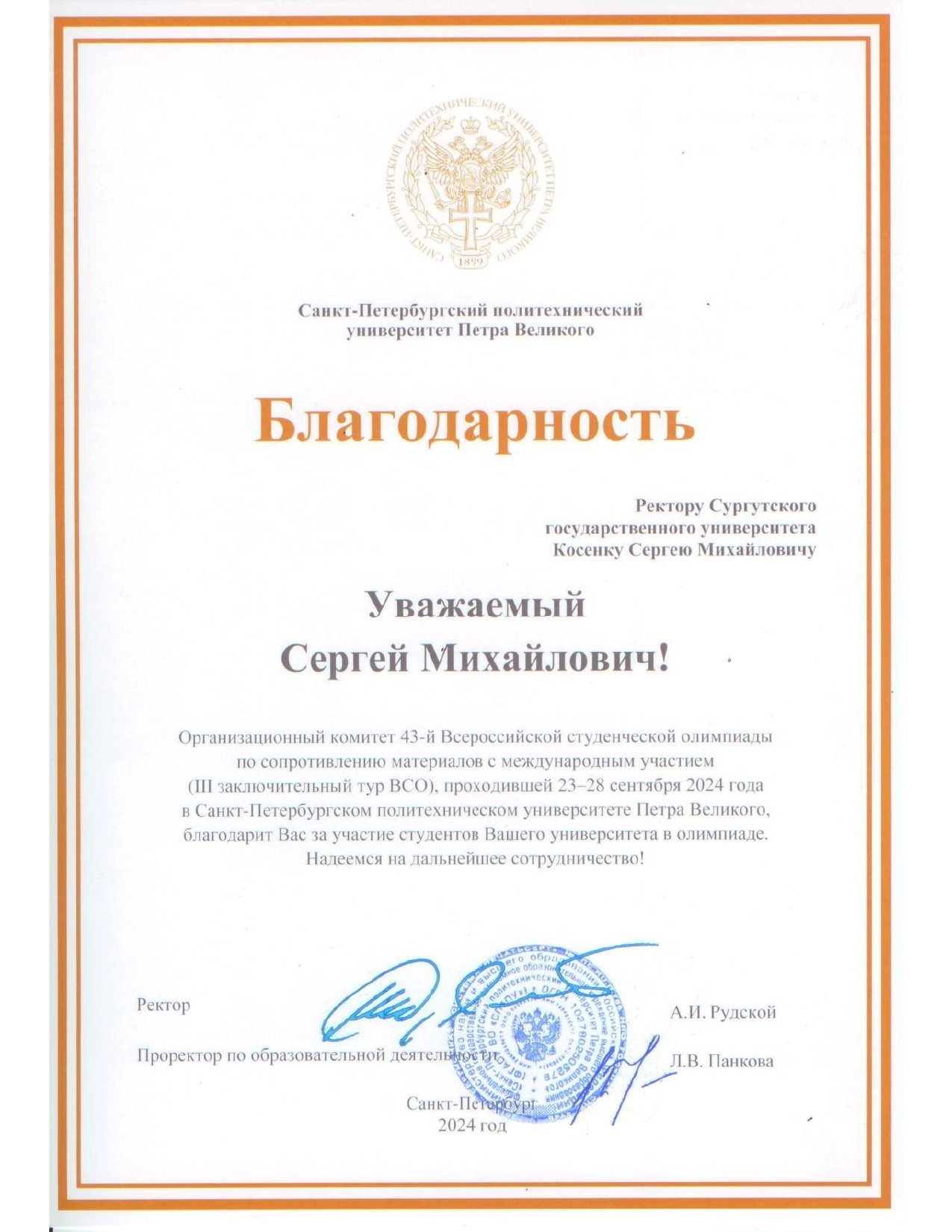 23–28 сентября в г. Санкт-Петербурге в Политехническом университете Петра Великого прошла 43-я Всероссийская студенческая олимпиада по сопротивлению материалов с международным участием (III заключительный тур ВСО).