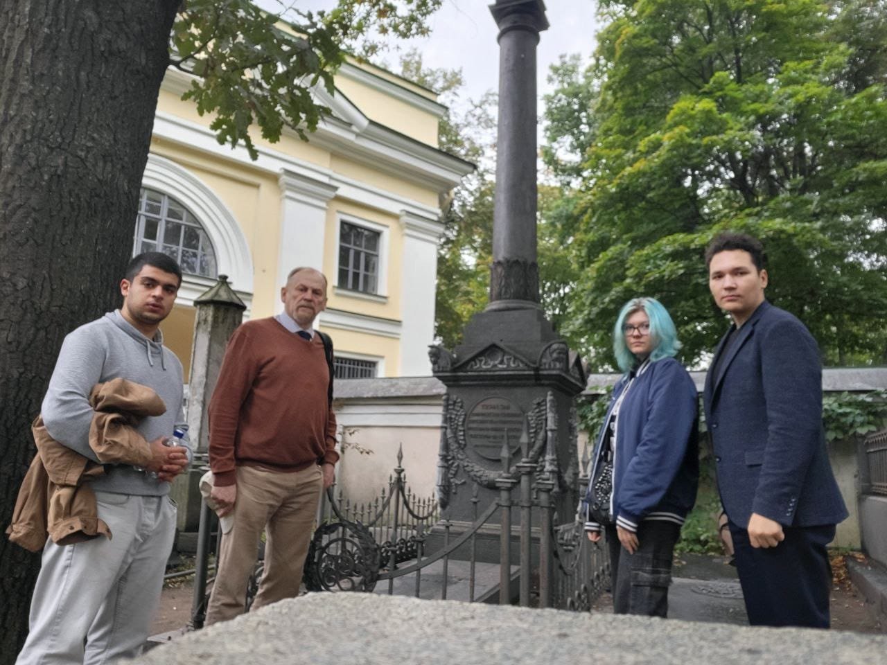 Фото 3- Победители олимпиады по сопромату 2024 года возлагают благодарственные цветы к могиле Леонарда Эйлера.