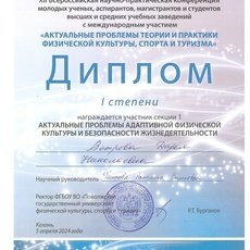 «Цель моего исследования заключалась в том, чтобы экспериментально обосновать необходимость учета физических и психических характеристик женщин в процессе построения рекреационно-оздоровительных занятий. В процессе исследования использовались различные аппаратно-программные комплексы: АПК "Медасс" (биоимпедансный анализ состава тела) (биоимпедансный анализ – это контактный метод измерения электрической проводимости биологических тканей, дающий возможность оценки широкого спектра морфологических и физиологических параметров организма. – Прим. авт.), АПК "Варикард" (анализ вариабельности сердечного ритма, с помощью которого можно получить информацию о стрессоустойчивости и функциональных резервах организма), также мы оценили субъективное мнение девушек и женщин относительно качества жизни (опросник sf-36). В моей секции результатами своих научных исследований поделились 16 докладчиков. Каждая тема была по-своему интересна, конечно, много нового успела и для себя почерпнуть! Я со школьных времен участвовала в различных мероприятиях, писала социальные проекты и нередко была призером. Но среди конференций с участием студентов – это моя первая победа! Несмотря на то, что я достаточно уверенный в себе человек, было неожиданностью, когда при награждении дипломом 1-й степени, назвали мою фамилию. Безусловно, научно-практическая конференция стала для меня ценным опытом. Это было увлекательное путешествие в научный мир физической культуры, спорта и туризма! Благодарна родному университету и своему научному руководителю доктору педагогических наук, доценту, заведующему кафедрой физической культуры Наталье Виллиевне Пешковой, – прокомментировала Дарья.