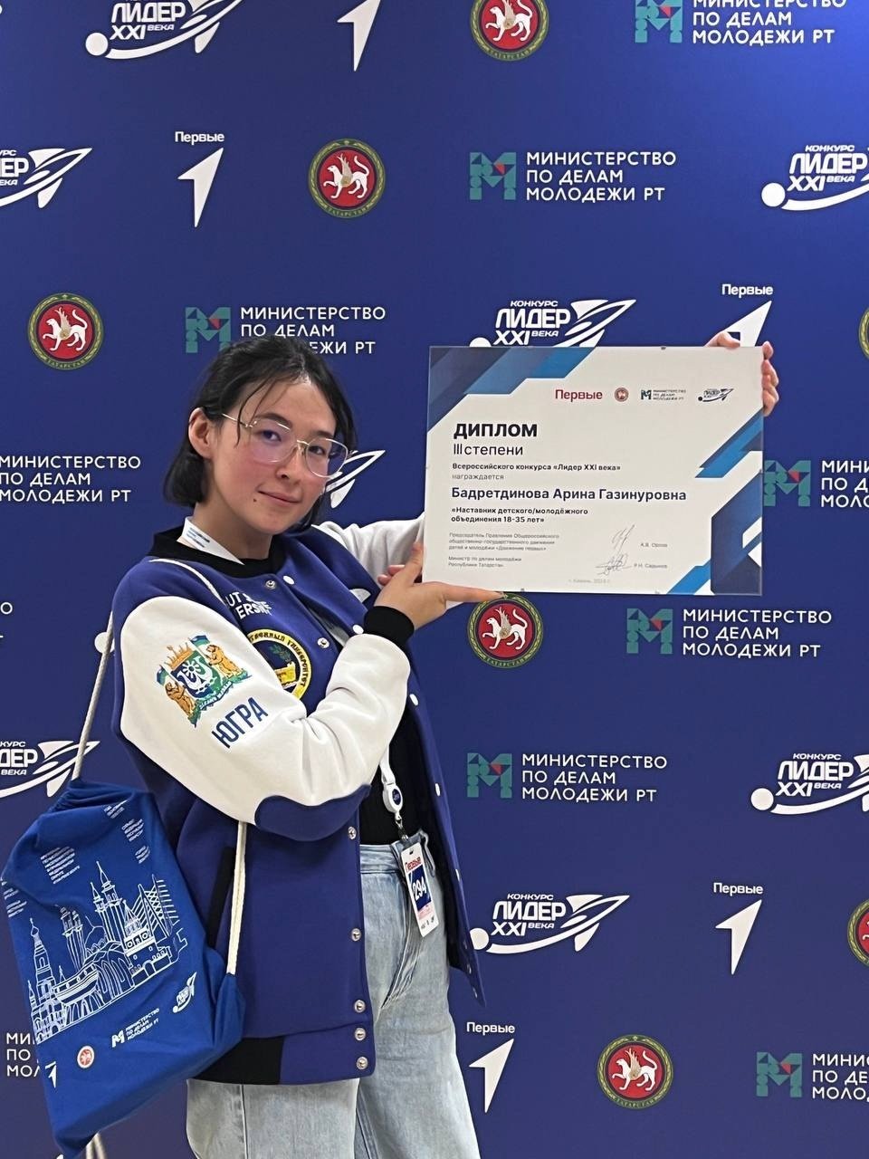 Студентка Института естественных и технических наук Сургутского госуниверситета Арина Бадретдинова завоевала «бронзу» во Всероссийском конкурсе «Лидер XXI века». Заявки на участие в нем подали свыше 6 тысяч человек, а финале встретились более 300 участников.