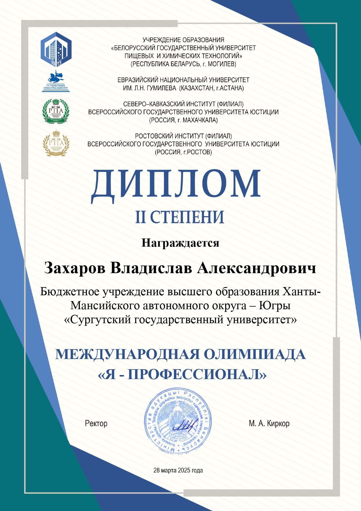 Студенты СурГУ – дипломанты международной олимпиады «Я – профессионал» в Республике Беларусь