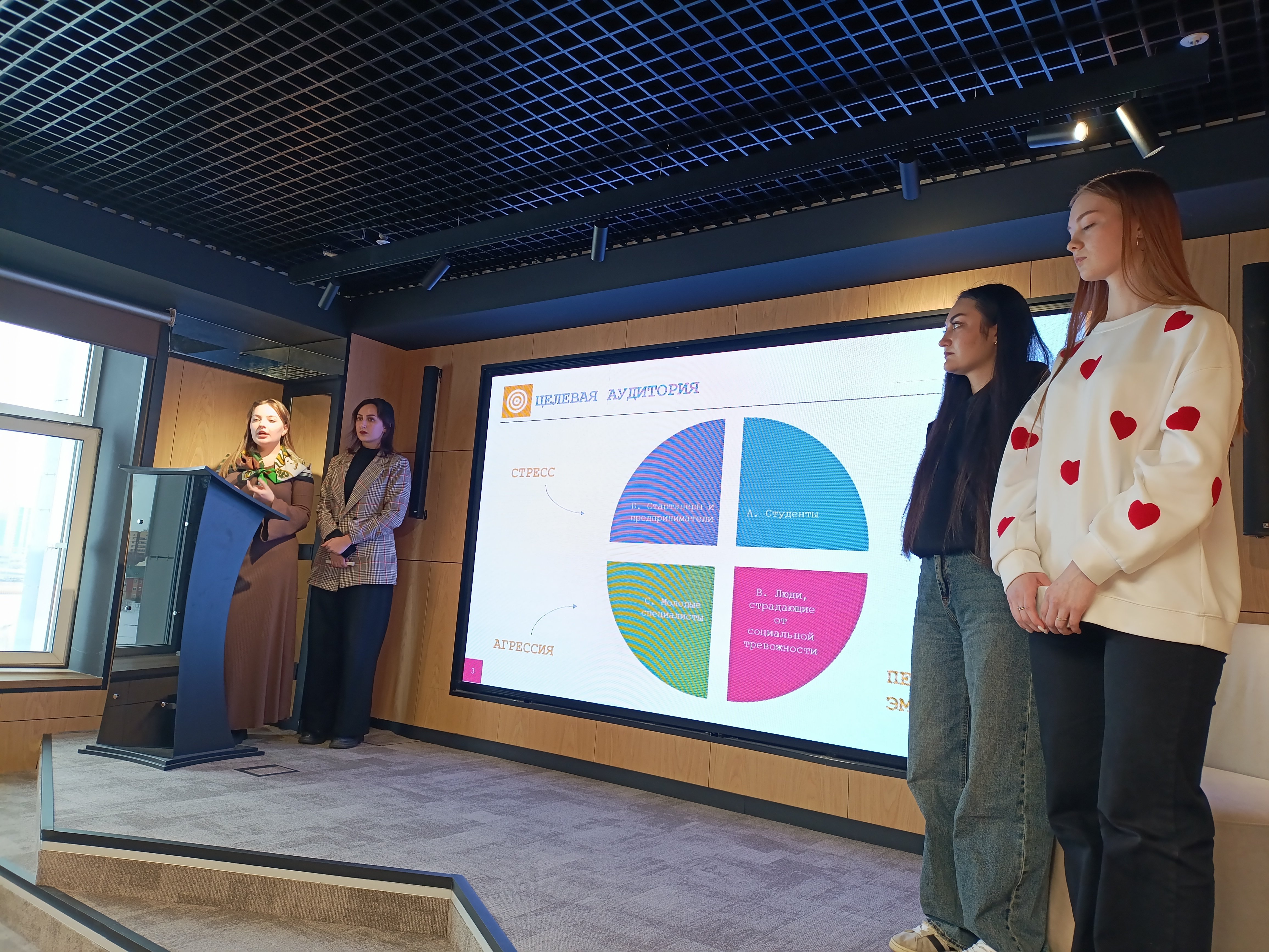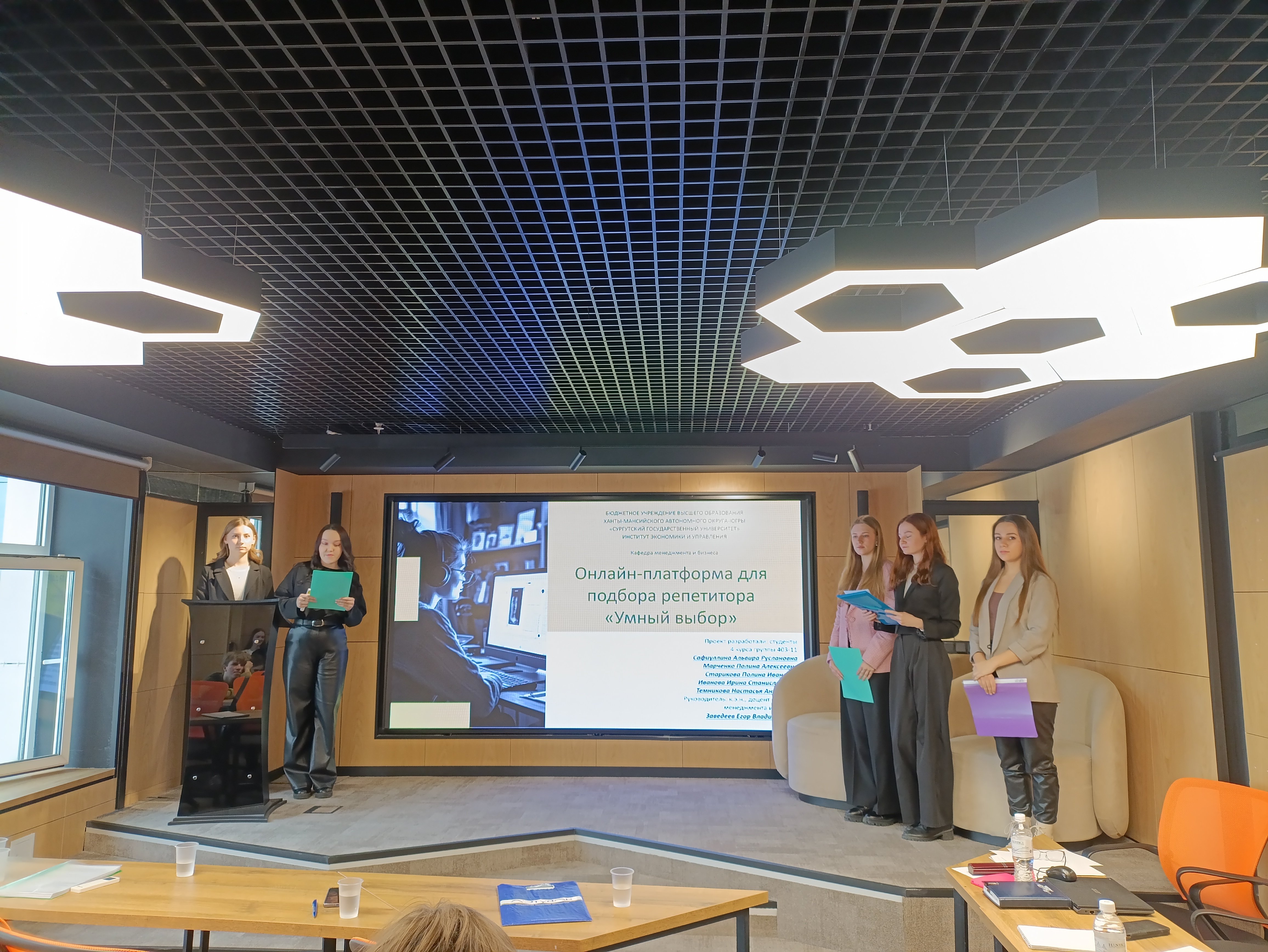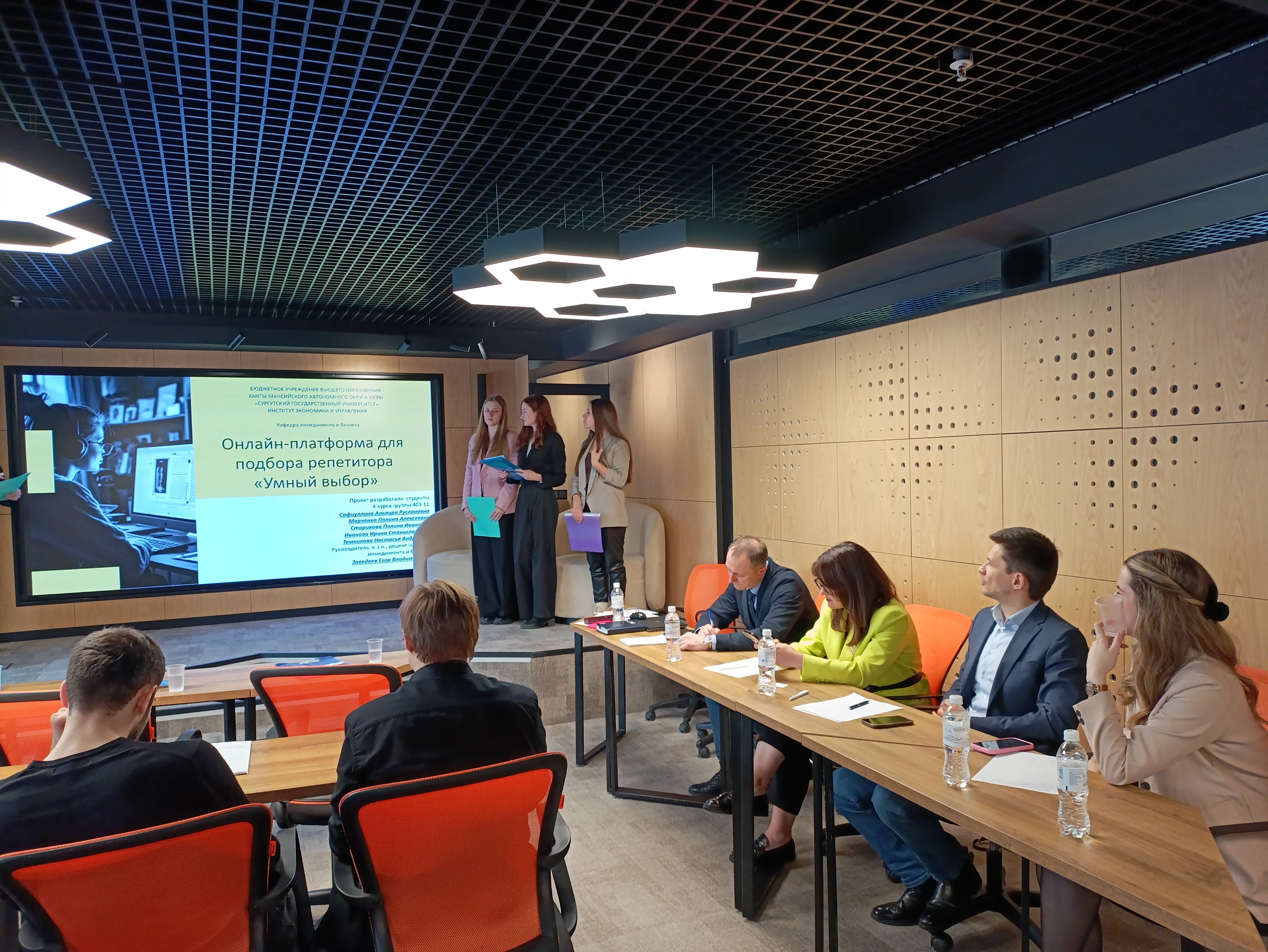 Больший интерес вызвали бизнес-проекты: создание сайта по подбору репетиторов «Умный выбор» (предложенный студентами 4-го курса: Сафиуллиной Альвирой, Марченко Полиной, Стариковой Полиной, Ивановой Ириной и Темниковой Настасьей), а также проект создания сайта по психологической разгрузке «Чат агрессии» (предложенный студентами 2-го курса направления «Менеджмент»: Логиновой Кариной, Мантула Юлией, Маркиной Полиной и Николаенко Екатериной).
